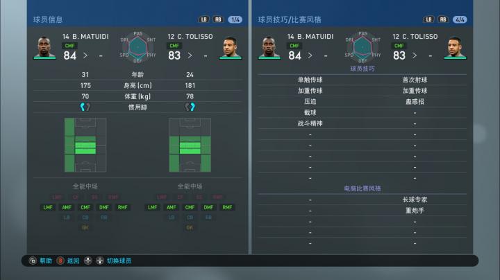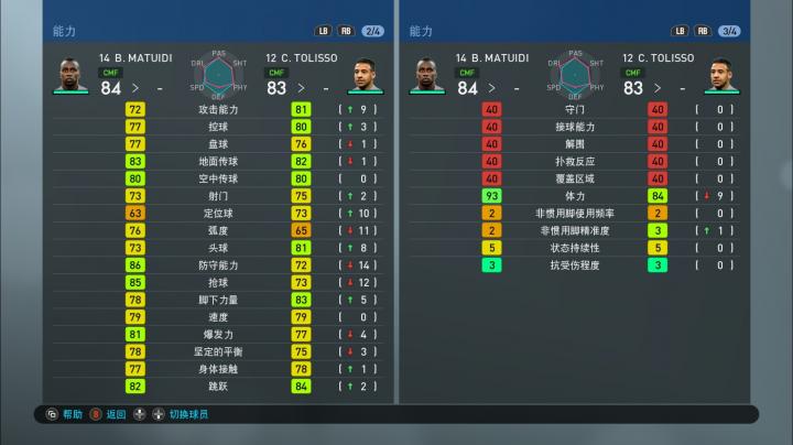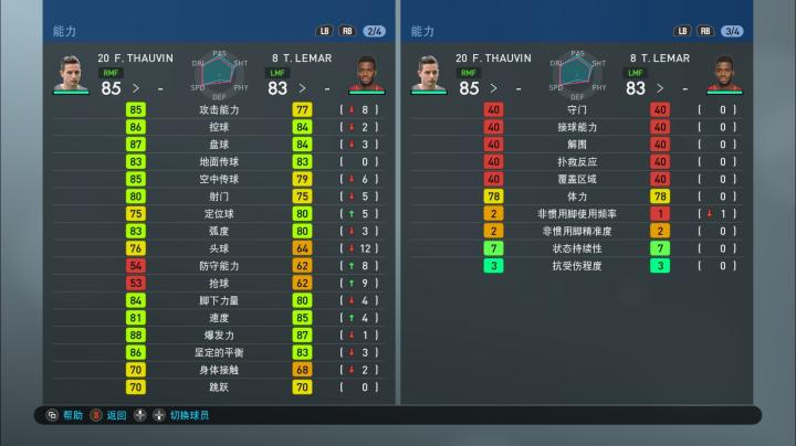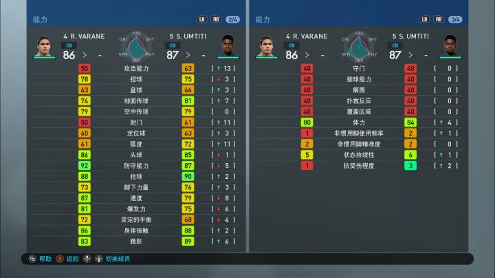 需要注意一点,实况足球手游版和端游在球员能力值方面有一些细微区别,比如手游版的球员能力值没有‘身体控制(敏捷)’这一项,而端游有(pes2019试玩版的身体控制被翻译成了坚定的平衡,应该是翻译错误)。