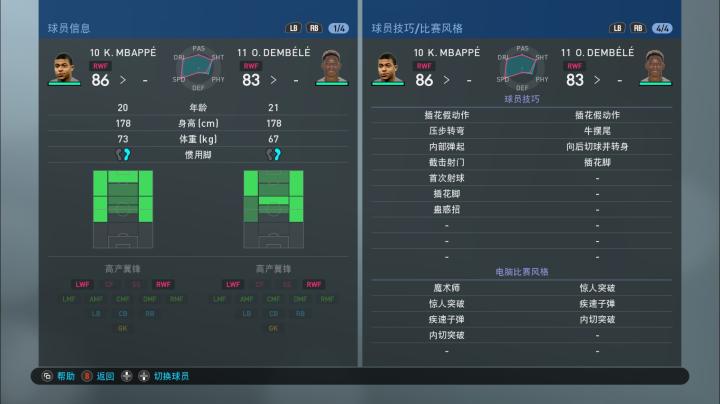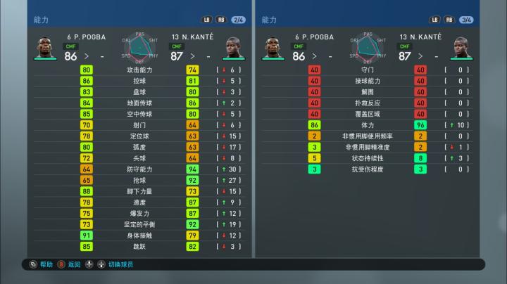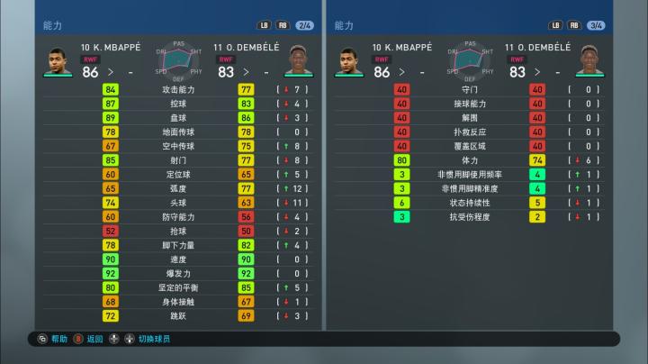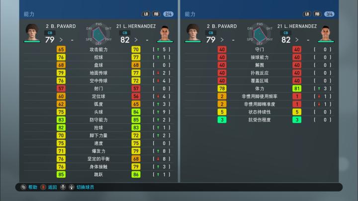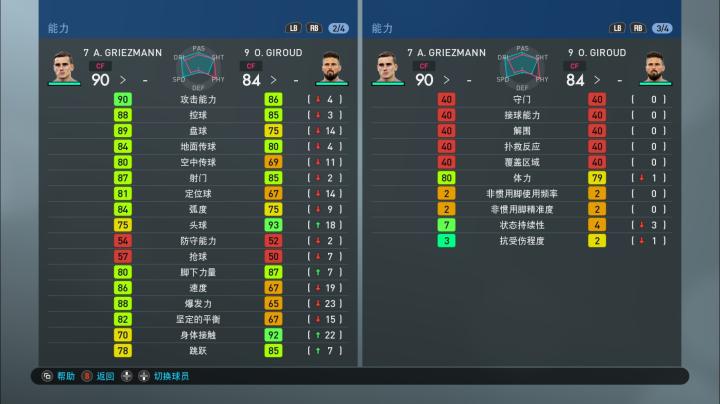 实况足球手游版OPR升降后球员各项能力值一览:法国国家队