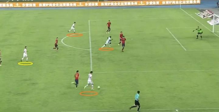 首先是防守的策略,辽宁的抢夺线并不高,基本上是在禁区前沿才进行逼抢。但是他的防守策略是跟人,等待对手的主动失误,这一点是陈洋接手以来一以贯之的策略。持球队员攻的越深受到的压迫就越多