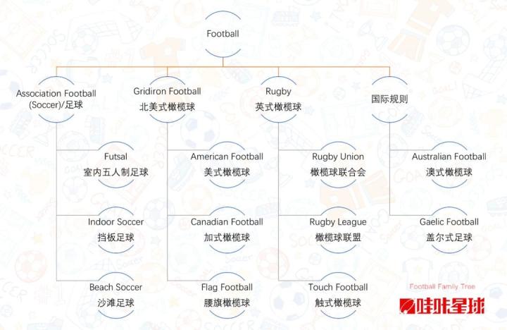 大体上Football包括足球、北美橄榄球和英式橄榄球三大全球家族,以及澳式橄榄球和爱尔兰盖尔式足球两个当地土豪。先从我们最熟悉的正宗足球说起(11人制足球就免了):