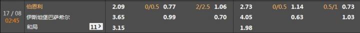 在两队的首回合交锋中伯恩利客场0-0与伊斯坦布尔战平。在新赛季的英超联赛首轮中伯恩利客场0-0与南安普顿战平,虽然上赛季南安普顿表现不佳,但圣徒的实力其实不差,而在新赛季经过引援调整后球队实力稳中有升。但在与伯恩利的比赛中,南安普顿主场却毫无优势而言,伯恩利占据场上主动权,说明伯恩利的稳定性。伊斯坦布尔在新赛季的土耳其超级联赛中主场2-0战胜特拉布宗体育。从之前的比赛看,伯恩利在三场欧联赛事中均与对手战平。上赛季伊斯坦布尔打进欧联小组赛,但2胜2平2负的他们未能从小组赛中出线。