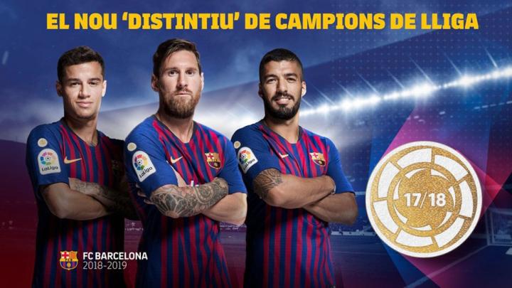 全新西甲联赛卫冕冠军臂章采用金色与白色打造,圆形的臂章内加入与西甲联赛标识相同的设计,徽章正中加入卫冕冠军的夺冠赛季时间。这一全新臂章将印制在球衣右袖的西甲联赛臂章上方。作为2017/18赛季西甲联赛冠军,巴塞罗那将成为首个在球衣上加入西甲联赛卫冕冠军臂章的球队。