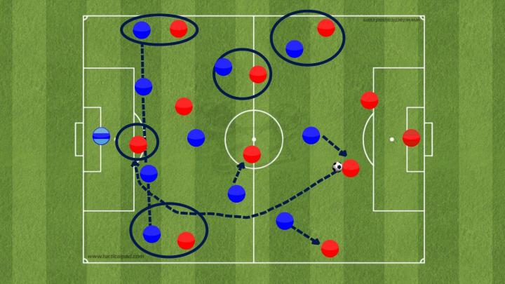 如果对手不贴身盯防,这意味着他们可以在狭小的空间内接球和配合,他们既可以转身拿球突破,也可以接球后给前锋塞直传球,或者他们可以将球打到空旷的边路,通过传中攻击对手的防线。