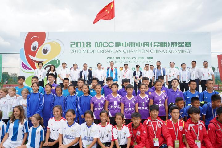 沟通世界,筑梦未来,首届MCC地中海中国(昆明)冠军赛8月18日正式拉开序幕。来自中国、西班牙、德国、丹麦、比利时等地的24支男女足球队伍,600余名球员及教练员汇聚在云南省昆明市嘉丽泽国际体育训练基地,该赛事是拥有18年历史的知名青少年赛事“MNC地中海杯”在昆明开启的中国赛,意大利传奇球星赞布罗塔作为本届形象大使出席活动。