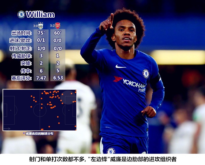 在阿扎尔和科瓦契奇出场之后,切尔西的左路进攻展现出了截然不同的面貌,球队可以打出细腻的传切和多变的边中结合。科瓦契奇的首秀表现可谓是非常惊艳,克罗地亚人展现出了出众的护球和盘带技巧,长短皆宜、力道精准的传接球同样令人称道,他的出现不但能够稳定蓝军的运输线,还可以在阵地战破局中发挥关键作用。阿森纳不断向后收缩防线依然无法遏制蓝军的渗透,埃梅里在比赛的最后阶段不断起身招呼队员向前施压,亦是看到了蓝军在阵地攻坚中的威力,以及己方在低位防守中的被动。