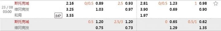 欧洲著名体育数据公司为斯托克城开出了主让平半盘0.80的低水,从盘口上看,显然主队斯托克城是胜面更大的一方。虽然两支球队的近5次交锋中维冈竞技2胜3平保持不败,但是距离最近一次交锋已经时隔近6年,两支球队如今的状态和实力已经不可同日而语。斯托克城状态不佳,但是坐拥主场之利和阵容优势的他们将会视本场比赛如决赛一般重视,战意十足。大小球盘口方面,2.5球是个值得一搏的大球盘,新赛季两支球队防守不佳,打出大球的概率高达83%,贴合盘口分析,主队本场比赛志在取胜,而客队的防线状态先让不得不让他们将重心放在进攻上,不排除本场比赛两支球队将再次上演进球大战。