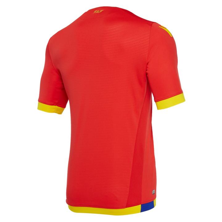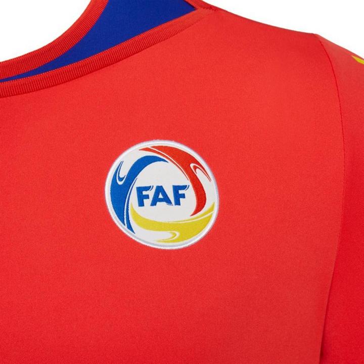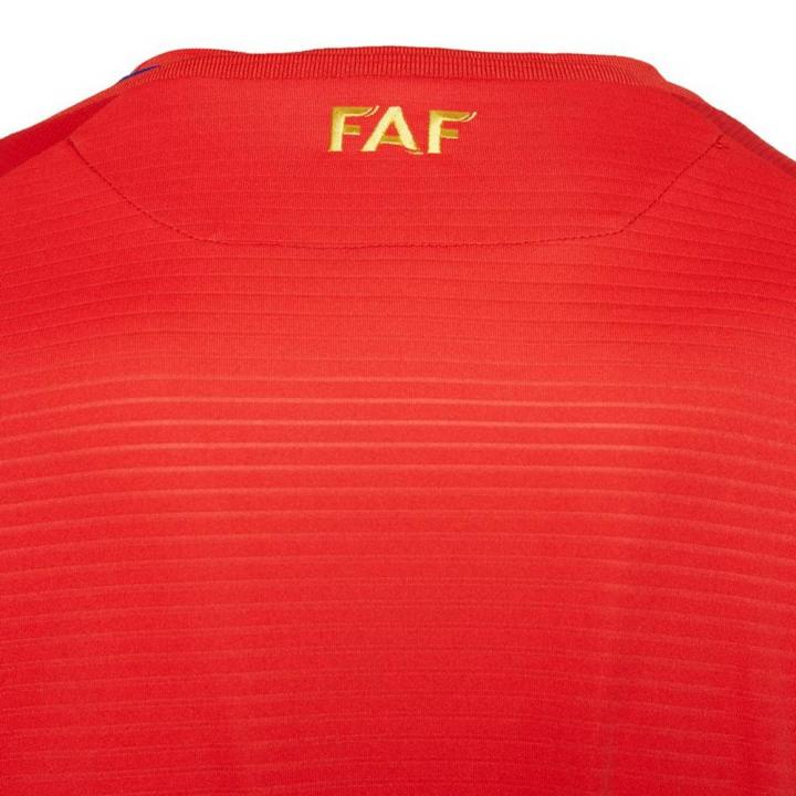 安道尔国家队2018/19主客场球衣均以蓝黄红三色的安道尔国旗为灵感打造。主场球衣以红色为基调,衣领、袖口以及下摆均加入蓝色与黄色装饰。球衣正面加入比利牛斯山脉轮廓的暗纹,展现出这个欧洲袖珍国家的地理风貌。球衣背后衣领下方加入安道尔足总的名称缩写“FAF”(Federació Andorrana de Fútbol)。