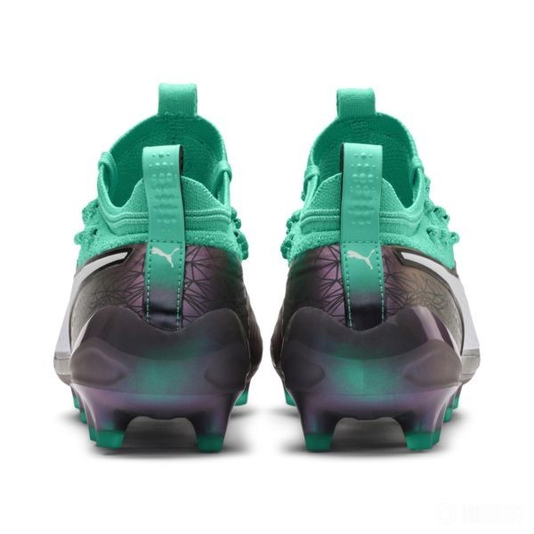 第二个最为明显的特点是evoKNIT鞋舌。Puma One 1的中高筒设计意味着鞋舌连着鞋筒体现出了“袜套”的效果。evoKNIT的中文直译是“进化版的编织物”,也就是说鞋舌和鞋筒都是由织物组成。这种柔软的质料让球员可以轻松地上脚,而且裹脚压力也没那么大。