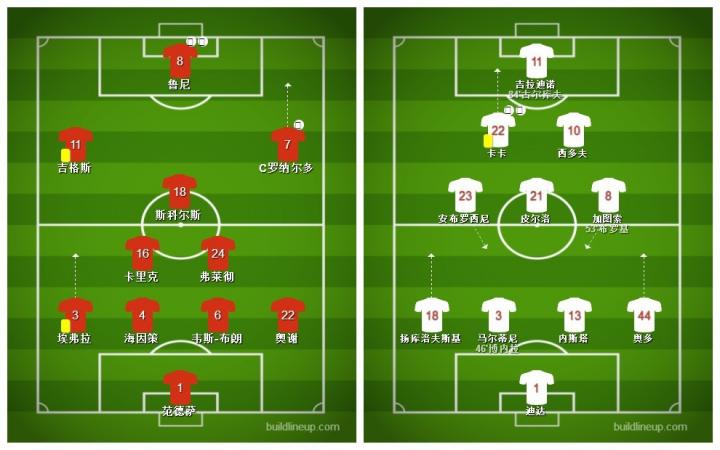 进球:5'C罗,59'90+1'鲁尼/22'37'卡卡