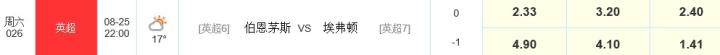 亚盘推荐:伯恩茅斯平手盘