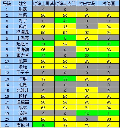 那届世青赛,由德国老帅克劳琛率领的国青队共参加了3场小组赛和1场淘汰赛,分别2:1胜土耳其、3:2胜乌克兰、4:1胜巴拿马和2:3负德国。4场比赛打进11球,而拥有梅西的冠军阿根廷7场比赛仅打进12球,国青队这种国际级表现简直不敢让人相信这是中国球队。