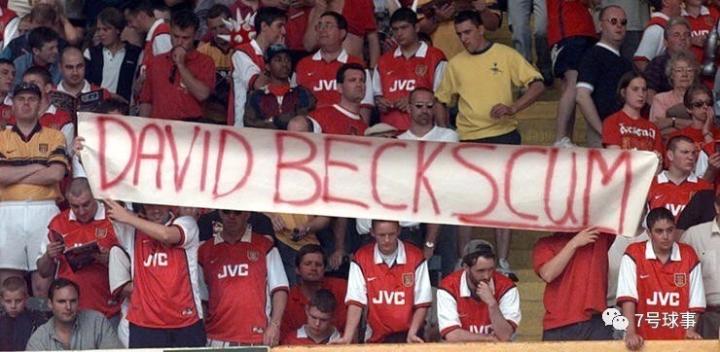 然而,曼联无法保护贝克汉姆不受对手球迷的影响。在八月的温布利慈善盾比赛中,阿森纳球迷们打出了一条标有“Beckscum”(垃圾,无能的意思)字样的横幅。