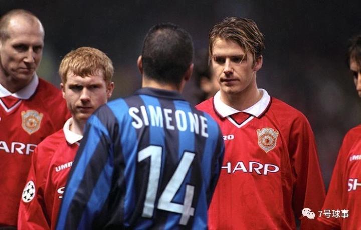 他们四分之一决赛的对手是迭戈·西蒙尼所在的国际米兰。所有的目光都集中在赛前握手。这可能是赛场上最冷冰冰的握手,可以看到保罗·斯科尔斯和雅普·斯塔姆站在小贝旁边地盯着西蒙尼。两次助攻和2-0主场胜利后,贝克汉姆笑到了最后,他甚至和阿根廷人交换了球衣。