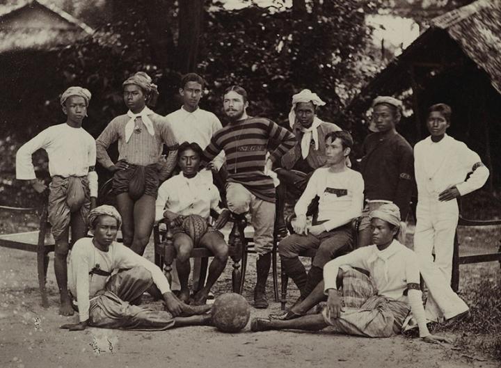 (据说是中间这位名叫乔治-斯考特的英国人在1879年把足球带到了缅甸)