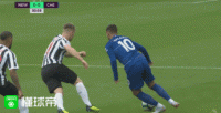 话音还没落,纽卡禁区右边有一蓝色身影打出一脚速度不快、角度不刁、要想进门要穿过20多条腿的射门……