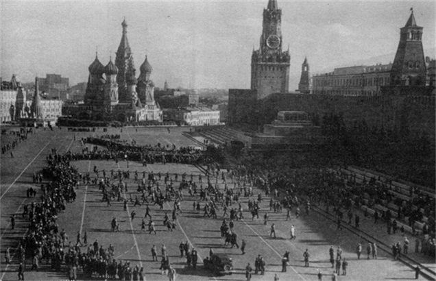 这里是莫斯科的红场,是苏联最神圣的地方,这里正在举行一场盛大的游行。游行队伍的前端是一辆载有苏联领袖列宁画像,以及一尊高大的斯大林雕塑的大卡车。而紧随其后的是苏联国内最优秀的运动员们。道路两旁的人们爆发出阵阵欢呼,这欢呼声即送给他们伟大的革命导师,也送给他们最亲爱的运动健儿。