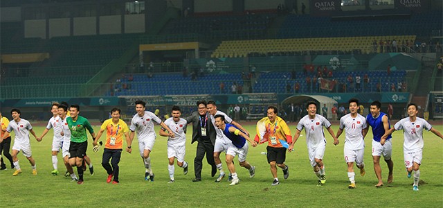 8月27日23:00,河内,数十万人涌上公园和街头庆祝一个不眠之夜。在雅加达亚运会上,越南人已经获得了26枚奖牌,但这一切都不会比越南男足在1/4决赛上以1:0战胜叙利亚的比赛更激动人心。疯狂的人群高声呐喊,挥舞国旗,直到凌晨一点也没有完全散去。他们完全有理由这样做,当牧童大卫用投石弹弓打中歌利亚的脑袋,他们理应庆祝。