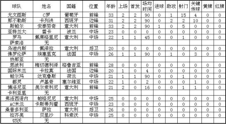 (图)意甲新赛季前两轮7号数据一览