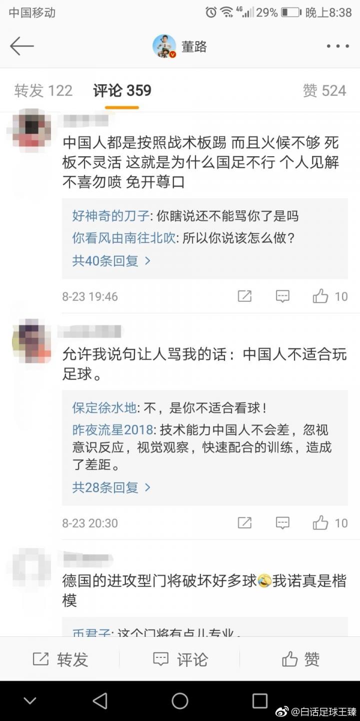 对于他们的种种表现我目瞪口呆,这时候产生了个疑问,是谁打造了这样的一支“中国足球小将”,董路的名字映入眼帘,原来是他,著名足球解说,起初我以为他只是一个赞助人,或者通过他能让更多的人看到足球小将,渐渐看的“中国足球小将”的信息多了,我发现董老师原来像是一个教父的角色。他是这群孩子的灵魂人物,以U50的身份带领着这帮U9的孩子们,他没有像其他青训一样揠苗助长式的催化孩子,我看到训练场上他们很开心,U50还经常串场比赛,像朋友一样,他将的东西孩子们会认真听,他也会大汗凌漓为孩子们示范,他在教这帮孩子如何踢球,他也享受在和这帮孩子们相处的足球故事中。“冠军杯”夺冠后董老师就开始奔波接下来的德国行,他有无奈,一时没有好的赞助,他只能带16个队员出国,面对取舍,面对他心爱的孩子们,有点难,但他还是忍着做出了决定。短短的几天他需要解说比赛,完成自己的本职工作,为万项的签证操心,一天之内两个省间的往返更是家常便饭,期间有个小插曲,七夕那天夜里,董老师做飞机去大连,应该也是为小将的事情奔波,其实大家也知道董老师的辛苦,但在网络时代大调侃的背景下很多网友就在微博下做了一些有关七夕节的评论,惭愧我也是其中一员,结果一位老人家在这些评论下一一训斥,原来是董老师老师的母亲担心一些评论会给董老师带来负面影响,老人家虽然有些不懂现在的幽默却把我看哭了,可怜天下父母心啊。其实通过这个小插曲,也看到了董老师为“中国足球小将”付出的心血。突然这时候我对“中国足球小将”还有董老师的想法转变了,振新中国足球这个事感觉通过我们来强加给他们,好像我们没有这个权利,他们自己主动扛起来了,我们应该为他们的勇气和担当鼓掌,我们甚至没有权力评判他们配不配为国出战,也许这些孩子未来不选择足球,这些在董老师带领下和同伴一起踢球,一起去争取胜利的日子也将是他们最美好的回忆,让他们享受足球的乐趣吧,我们这些旁观者如果不能帮忙,请不要插嘴他们的话题。