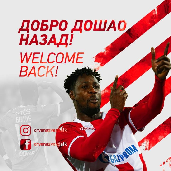 贝尔格莱德红星官方宣布,江苏苏宁前锋博阿基耶回归球队。