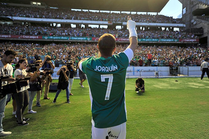 虽然天性幽默,但华金对皇家贝蒂斯的爱可绝对不是玩笑。在意甲俱乐部佛罗伦萨效力两个赛季后,华金接受降薪,回到了培养他的俱乐部。2015年,大约2万名皇家贝蒂斯球迷在华金回归俱乐部的亮相仪式上到场,这项数据超过了之前一个周末西甲联赛场均观众人数的一半。