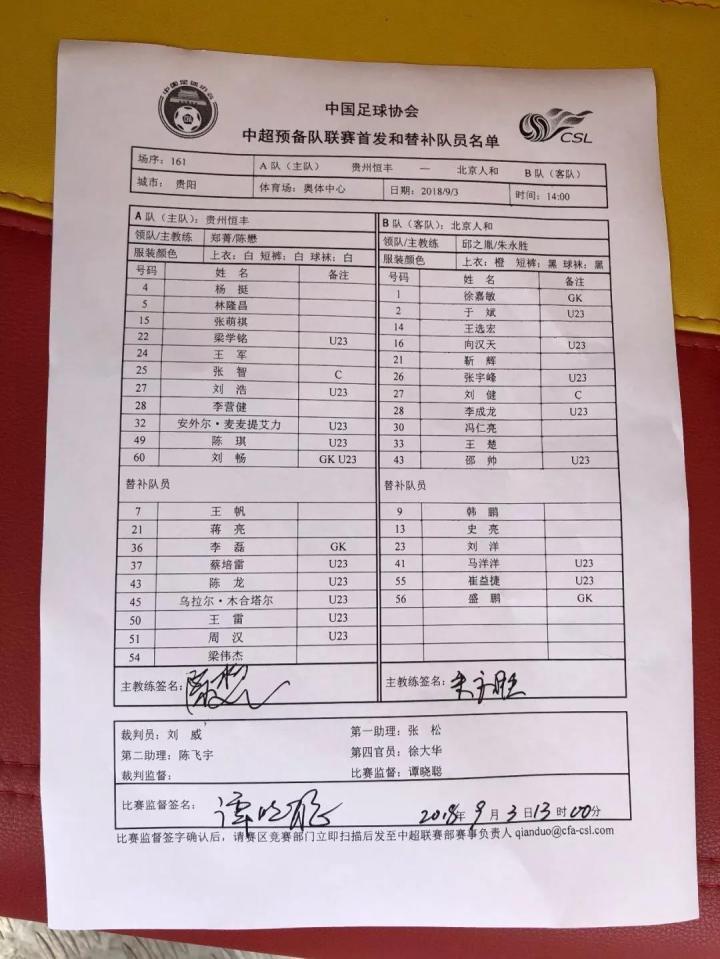 北京时间9月3日14:00,中超预备队联赛第21轮贵州恒丰主场对阵北京人和。上半场双方均无建树,贵州恒丰创造了多次射门良机可惜都未转换为进球。下半场第74分钟,北京人和左路传中,中路接球后头球破门。最终,贵州恒丰0-1负于对手。