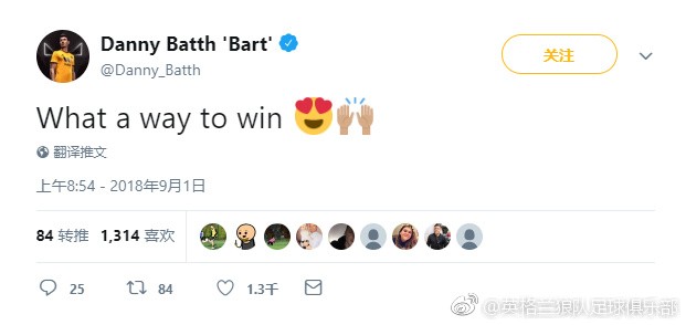 球队老队长巴斯也在推特上发来了祝贺,他在比赛前一天被外租到了英冠的米德尔斯堡,巧合的是,绝杀的特劳雷正是本赛季从米堡转会加盟狼队。
