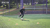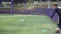 第一个训练是多方向第一脚触球,作为边锋,你常常会脚踩边线接球,如果我们能做到第一脚触球就完成摆脱,那么形势将会非常有利。