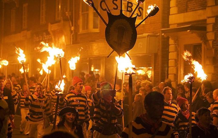在布莱顿所在的苏塞克斯郡,为了纪念1557年殉道的17名新教徒,当地人会在每年的9月到11月举办为期两个月的篝火节。在节日期间,当地人会把脸涂成黑色,以游行、晚会等各种方式去庆祝一年一度的篝火节。