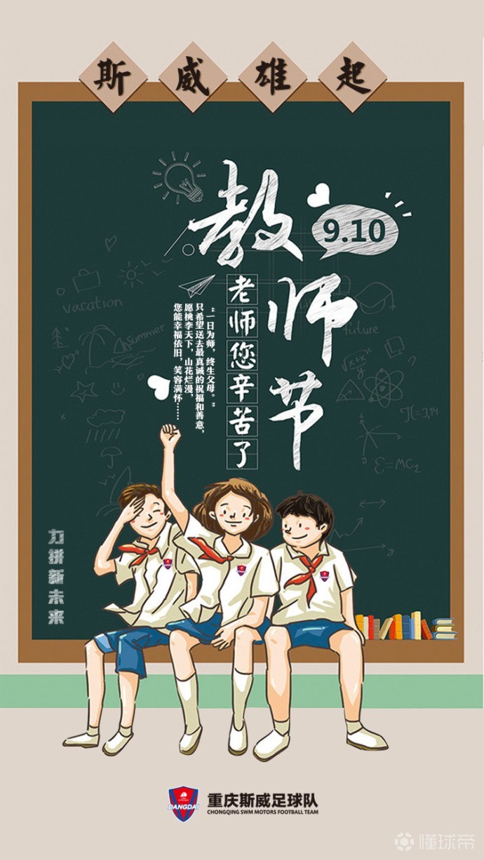 重庆斯威队则发布海报并写道:“一日为师,终身父母!只希望送去最真诚的祝福和善意,愿桃李天下,笑容满怀……老师们,辛苦啦! ”