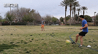 这个训练主要练习分球,可以帮助我们在后场简单利落出球,传给门将、中场、边锋、中后卫或者长传找前锋。
