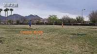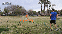 我们打开身体朝向场地,回头观察,然后两下触球之内可以将球接向传球的方向,标志盘们就是我们假想的队友。