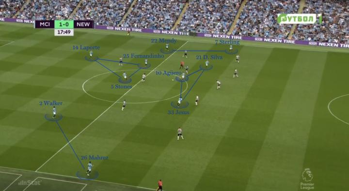 然后是传给中后卫,耐心的倒脚,寻找机会渗透对方的第一道防线。