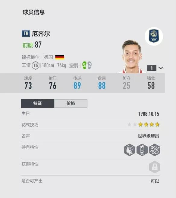 大饼制造专家厄齐尔,不论在皇马还是阿森纳他都能把饼喂到前锋嘴边,至于吃不吃,那就要看前锋了…虽然游戏中厄齐尔是52脚,但这并不能妨碍他成为FIFA ONLINE 4里传球最好的中场之一。精准的长短传脚法,不论是后场直接找前锋反击,还是传接配合进行地面渗透,他都是球队中最好的润滑剂。出色的盘带配合上“盘带大师”特性,也能简单的摆脱对手逼抢。如果你喜欢玩经理人模式,他强大的视野和“中场指挥官”特性,说不定能传出让你大吃一惊的传球哦~