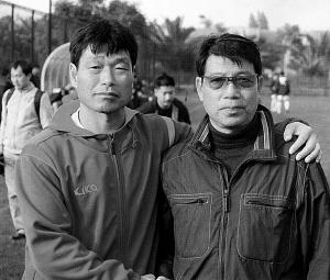 (图)朝鲜族球星高仲勋和国家二队教练徐根宝,前者是延边足球永远的旗帜