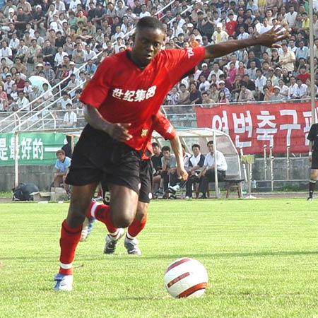 (图)民主刚果的佐拉和布拉基玛一前一后,是延边球迷最喜爱的外援