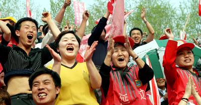 (图)每逢比赛,球迷拖家带口地涌入主场,火爆程度仅次于四川