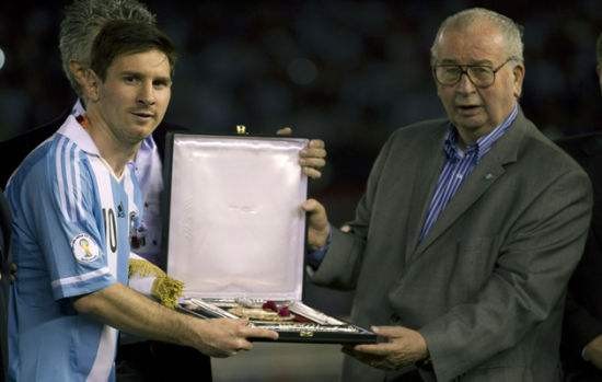 (图)阿根廷前掌门人格隆纳多(右)亲手创建了萨兰迪兵工厂队