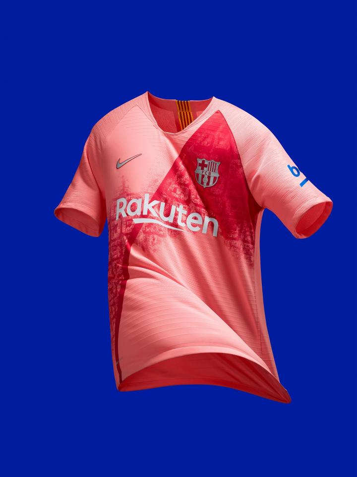 ENJOYZ足球西班牙巴塞罗那足球俱乐部与耐克共同揭晓球队2018/19赛季第二客场球衣。拥有大胆且充满活力的粉色外观与巴塞罗那城市街区鸟瞰图的新赛第二客场球衣展现出巴塞罗那足球俱乐部与这座城市间密不可分的联系。