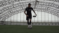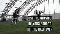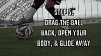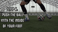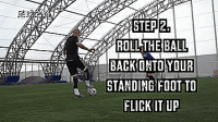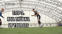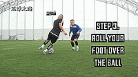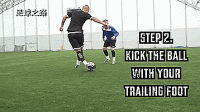 第二步:将球回拉到支撑脚,并用脚尖将球挑起到身体一侧。