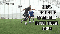 第四步:换脚,用脚尖向后踩球并转身,完整摆脱过人。