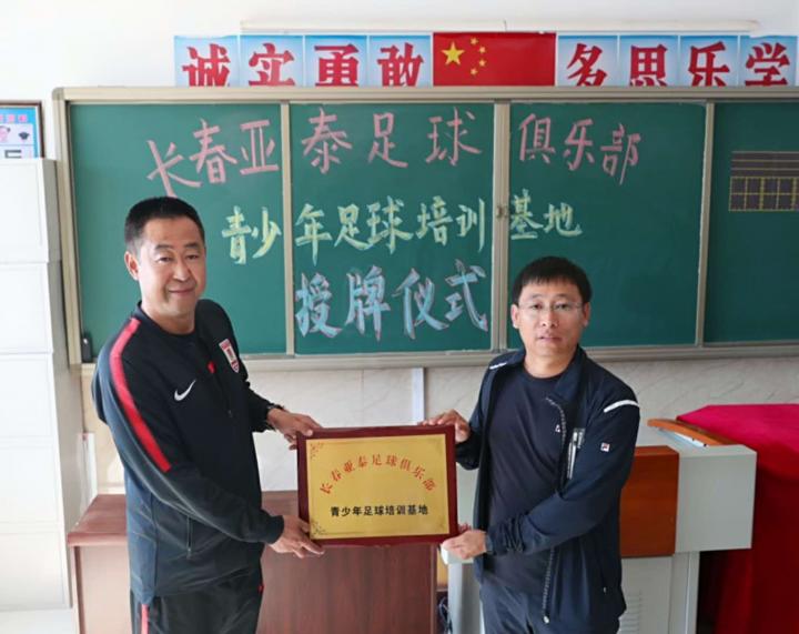 长春亚泰青训总监高敬刚向洮南市野马乡中心小学授牌