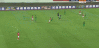 第53分钟,国安获得右侧角球机会,奥古斯托传球到禁区内,张瑀后点高高跃起头球攻门,皮球稍稍偏出左门柱。