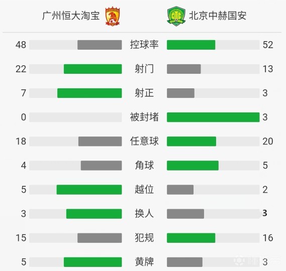全场比赛结束,广州恒大淘宝主场1-0战胜北京中赫国安。