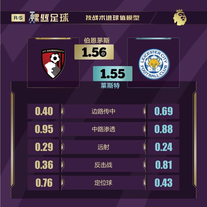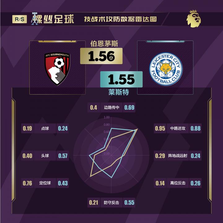 双方赛季初以来的状态都保持的相当不错,伯恩茅斯和莱斯特也都属于联赛中游的阵容实力具备一定的竞争力,伯恩茅斯主帅埃迪-霍维注重球员的跑动能力和高位压迫,另外最大的特点便是前场定位球角球战术,球队是自上赛季联赛至今通过定位球破门次数最多的球队,而莱斯特主帅普埃尔上赛季便开启了球队的更新迭代,新赛季更是一股青春风暴非常具有活力和冲击力,虽然夏季转会窗口出售了当家球星马赫雷斯,但是后起之秀的涌现更具可持续发展的战略意义。