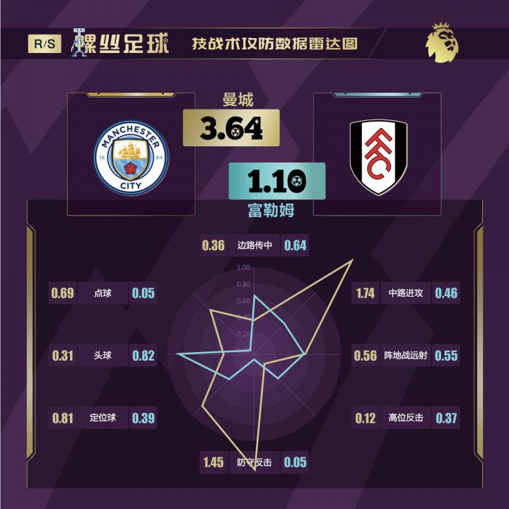 曼城新赛季联赛开局还是一如既往的稳定,瓜迪奥拉的球队作为上赛季联赛卫冕冠军的进攻统治力仍旧毋庸置疑,虽然新赛季所要面临的挑战会更加严峻一些,且冠军争夺更为残酷甚至惨烈,在缺少德布劳内的情况下进攻端还是缺少一些简单直接的助攻手段,以大卫-席尔瓦为首的进攻团更多的偏好短传渗透,容易遭受铁桶阵限制失去进攻耐心,不过瓜迪奥拉的球队进攻端全方位立体式的得分手段令对手防不胜防;富勒姆作为升班马球队所面临的生存压力颇大,球队也因此在夏季转会窗口下了血本花了不少钱引援,赛季初不可避免需要经历一段磨合阵痛期,特别是主教练约坎诺维奇的足球哲学偏好传控流和攻势足球,中后场整体需要依赖出球和传控来掌控比赛,进攻端则会选择比较直接的传中战术迎合头号中锋米特罗维奇的技术特点和高空优势,身后埋伏的许尔勒拥有足够的无限开火权,对付中下游球队在整体控制和进攻端具备一定的优势和虐菜能力,但是一旦与英超豪门扳手腕则有点牵强,要知道这么一条英冠级别的后防线怎么抵挡住列强的压迫。