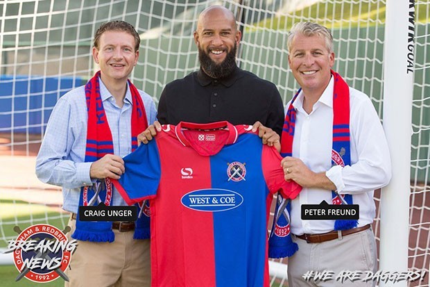 达根汉姆和雷德布里奇是英格兰全国联赛第五级别的球队,由于财务困难,俱乐部试图筹款10万英镑以度过难关,现效力于美国职业大联盟科罗拉多急流队的霍华德慷慨解囊,通过名下的Victoria LLC公司买下了该俱乐部。