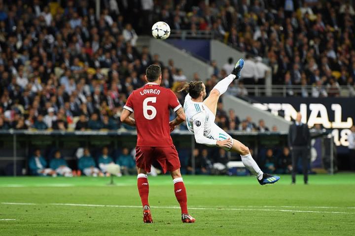 欧冠决赛中,替补上场的贝尔打入了一记绝妙的倒勾球,帮助皇马再次超出比分。