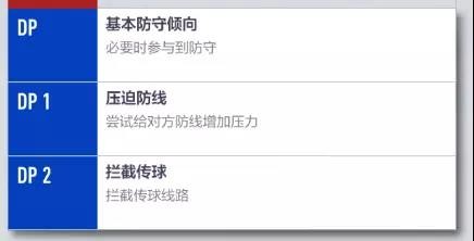防守倾向一般情况下使用基本设定即可。不过建议大家可以尝试使用DP1设定,前锋球员会对于对方的防线进行积极压迫,说不定会导致对方出现巨大巨大超级超级低级的失误。
