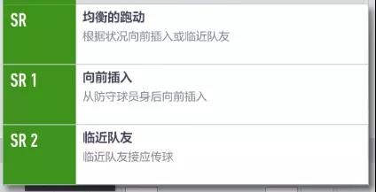 这项设定虽然是最后一项,却是决定边锋战术风格最重要的一环。设定SR1,你的边路球员会坚决插入,配合CC1设定一起使用,你的边路快马将化身一柄尖刀,疯狂撕扯对方防线;而设定SR2,边锋会主动接近其他球员拿球接应,适合具有较好传球能力的边锋使用,同时如果你能擅用LT+A的传球操作,在回撤接应之后,会再次前插,极有利于甩开对方边后卫的盯防。